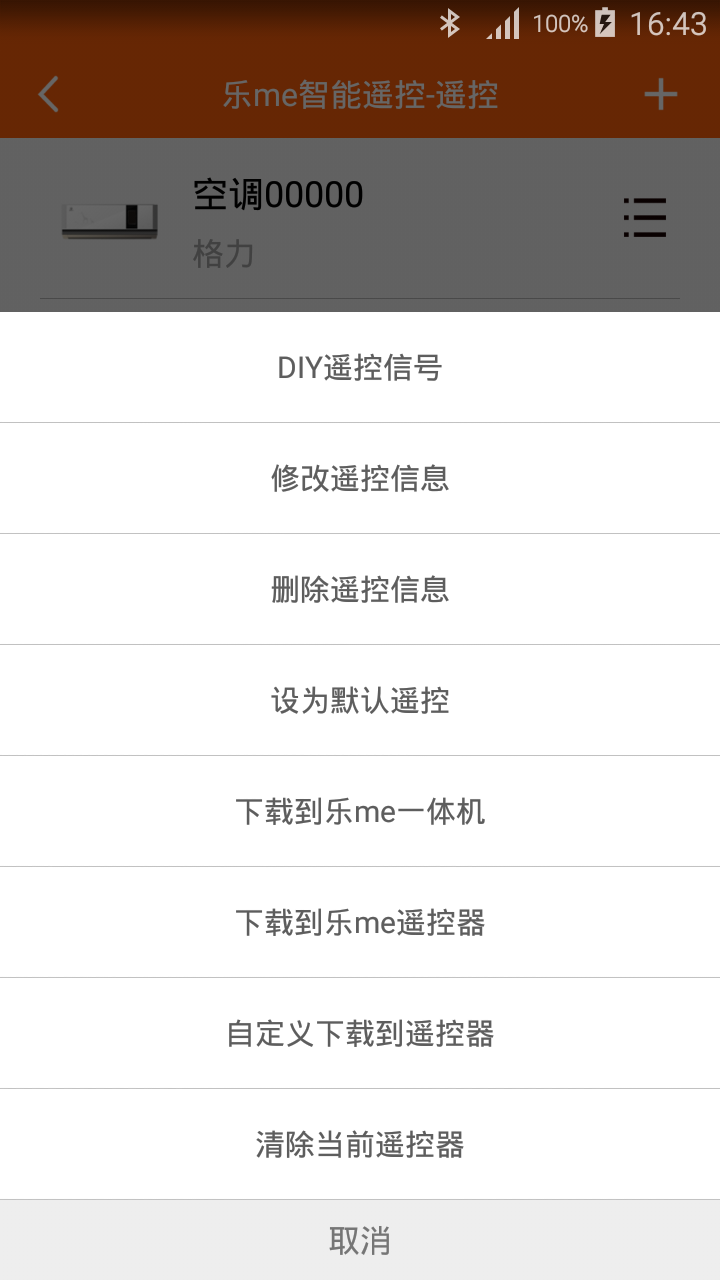 在主界面遥控列表中,点击右侧选项图标,会弹出选项菜单,如下图所示: